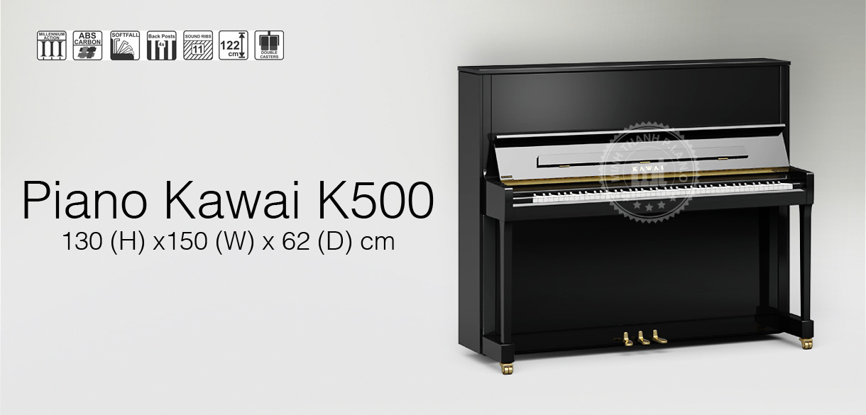 ĐÀN PIANO KAWAI K-500 VỚI CHIỀU CAO CHUẨN 130CM, CHO ÂM THANH MẠNH MẼ, THIẾT KẾ SANG TRỌNG HIỆN ĐẠI TRONG DÒNG K SERIES CỦA PIANO KAWAI. SẢN PHẨM KAWAI K500 RẤT THÍCH HỢP CHO CÁC PHÒNG THU HAY CHƠI TẠI NHÀ.